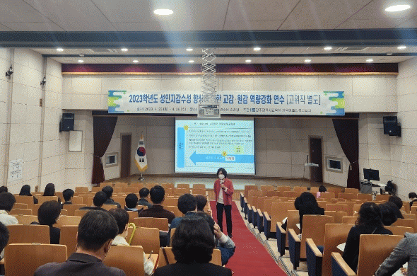 연수 강사로는 한국여성인권진흥원 ‘성희롱 방지 및 조직문화 진단 및 현장점검’자문위원으로 활동하는 유쾌한젠더로 채현숙 소장을 초빙했다. 채 소장은 조직문화 진단 체크리스트를 통해 학교의 조직문화를 점검해보고, 사건처리 절차 등에 대한 교육을 실시한다. 25일 강의에서는 “성평등한 학교문화 조성과 성희롱·성폭력 방지를 위해서는 교(원)감의 전문성과 성평등한 리더십의 실천이 중요하다”고 강조했다.