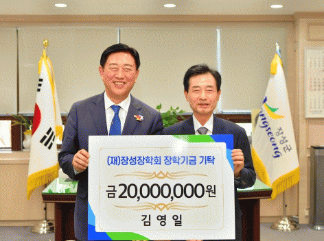 (재)장성장학회에 따르면 최근 퇴임한 김영일 전 장성군 산림조합장이 2000만 원을 장학금으로 쾌척했다. 기탁식에 참여한 김영일 전 조합장은 “미래를 준비하고 있는 학생들에게 힘이 되고 싶어 기탁을 결정했다”며 “기부 문화 확산에 보탬이 되었으면 한다”고 바람을 밝혔다. 김 전 조합장은 매년 명절마다 이웃을 위한 기부행사를 여는 등 나눔 실천에 앞장서 왔다.