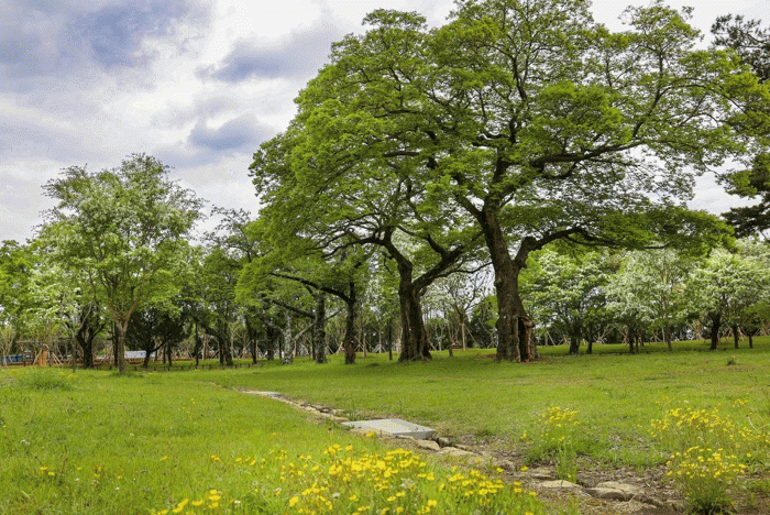 유당공원은 푸조나무, 팽나무 등 500년을 굵은 고목과 아담한 연못이 그윽한 풍취를 자아내는 유서 깊은 정원으로 이팝나무가 소담하게 꽃을 피우는 5월이 절정이다.