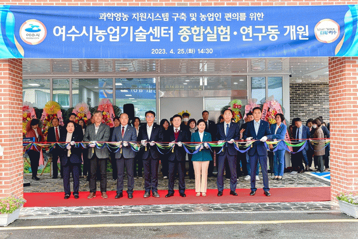 시에 따르면 이날 정기명 여수시장을 비롯한 농업인단체 등 150여명이 참석한 가운데 농업기술센터 종합 실험?연구동 개원식이 열렸다.