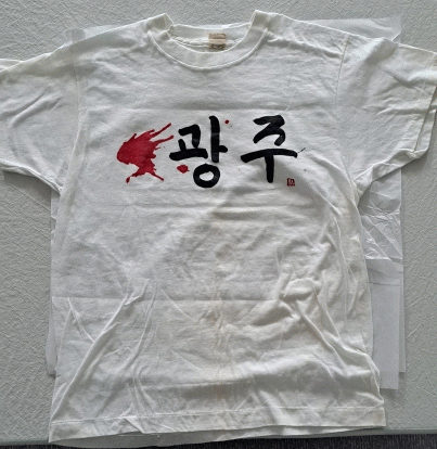 이번에 기증받은 ‘광주 티셔츠’는 당시 유학생 신분이었던 김환희씨가 입었던 옷으로, 흰색 바탕에 광주라는 글씨가 짙게 새겨져 있다. 이 티셔츠는 당시 광주학살 규탄 시위를 준비하던 재미유학생 이신범씨가 주문 제작한 것으로, 그의 이름도 담겨있다.
