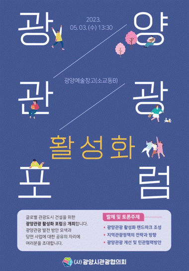 관광포럼은 광양관광에 관심있는 사람이라면 누구나 참석 가능하며, 기타 자세한 사항은 광양시관광협의회로 문의하면 된다.