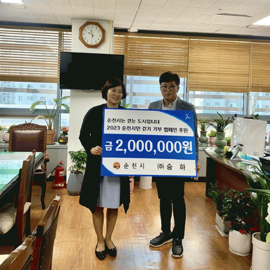 기부금은 매년 회사의 이익금 5%를 지역에 환원하며 조경업을 운영하는 ㈜승하에서 후원했으며 암투병을 하며 힘겹게 지내고 있는 시민 2명에게 각각 1백만원씩을 지원했다.
