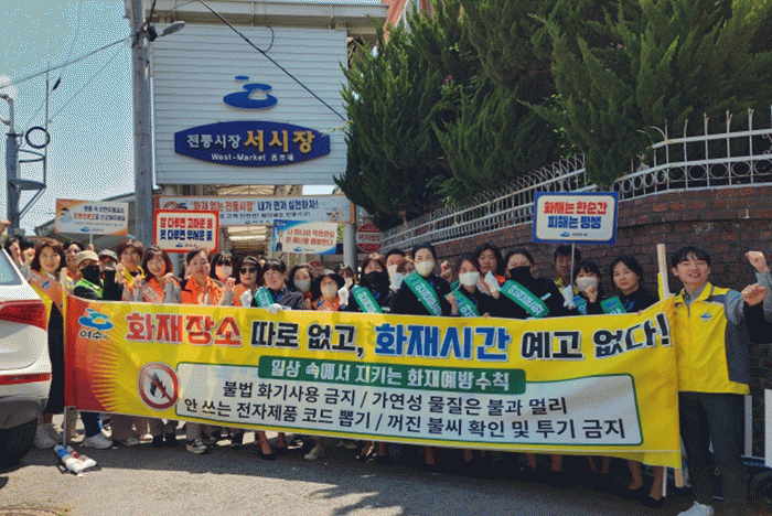 참여자들은 봄철 건기 화재사고에 대한 경각심을 높이기 위해 불조심 현수막을 게시하고, 전통시장 상인과 시민들에게 화재예방 홍보물을 배부하며 생활 속 화재안전 수칙을 안내했다.