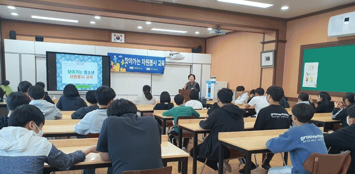 구례북중학교 전교생 30명을 대상으로 청소년의 눈높이에 맞춰 자원봉사의 정의와 특성, 봉사활동 영역과 유의 사항 등의 교육을 진행했다.