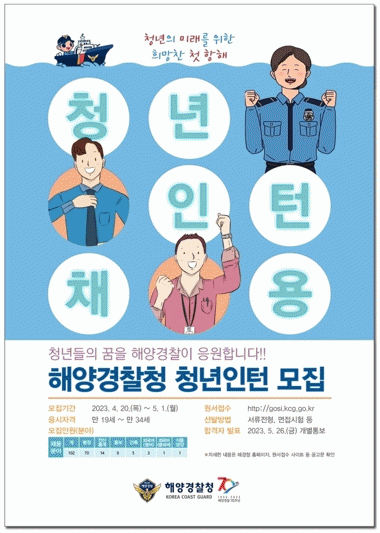 이번 청년인턴 채용은, 사회 진출을 준비하는 청년들에게 해양경찰에서 일할 경험과 기회를 제공하고, 채용된 청년의 다양한 시각과 목소리를 정책에 적극 반영하기 위해 이번 채용을 실시하게 됐다.