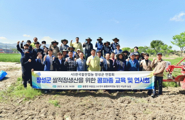 군은 26일 황룡면 부흥리 일원에서 쌀전업농, 논콩 재배농가 100여 명이 참석한 가운데 ‘논콩 파종 연시회’를 개최했다.
