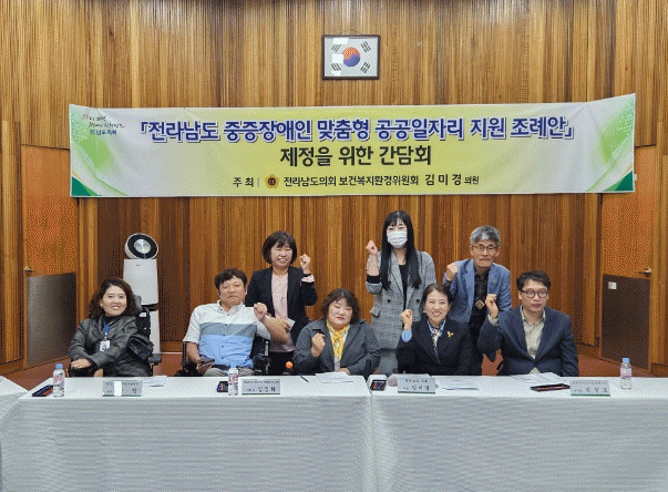김미경 의원은 “의회 입성 전부터 권리중심 중증장애인 맞춤형 공공일자리 지원 조례 제정 필요성을 느꼈고 간담회도 조례의 내실을 기하기 위해 마련했다”며 “이후에도 관계자들과 계속 소통하면서 합리적인 방안으로 조례 제정을 추진하겠다”고 말했다.