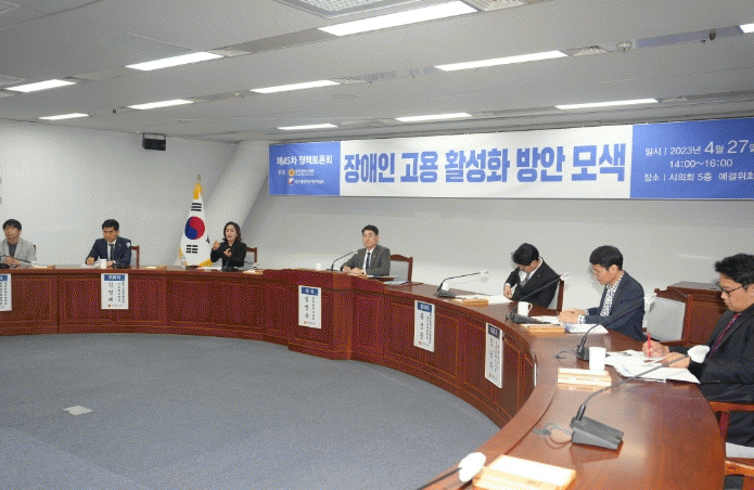 ? 좌장을 맡은 심창욱 의원은 상시근로자 50인 이상 근무하는 사업체에서는 의무적으로 일정수의 장애인을 고용해야 함에도 불구하고 그렇지 않은 사업장이 우리시에도 많고 이에 따라 사업주가 부담하는 장애인 고용부담금이 매년100억 원 이상 납부되고 있다고 지적하면서 기업의 적극적인 고용노력과 함께 부담금은 오롯이 장애인 고용활성화에 사용해야 한다고 주장했다.