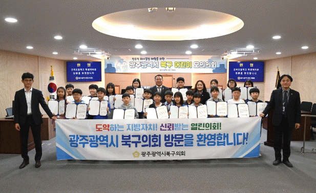 개원 32주년을 맞이하여 진행된 이번 모의의회에는 본촌초등학교 및 건국초등학교 학생 75명이 참여하여 북구의회 견학하고, 이어 본회의장에서 ▲북구의회 교육영상 시청 ▲3분 자유발언 ▲주요업무 추진상황 청취 ▲초등학생 스마트폰 사용 규제 완화에 대한 건의안 ▲어린이 안전에 취약한 제품 리콜 결의안을 안건으로 제안 설명을 하는 등 본회의 전반의 절차를 진행하며 지방의회의 역할과 기능을 체험했다.