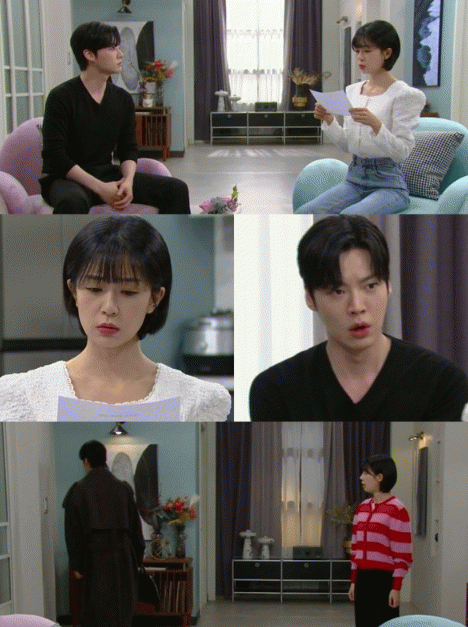 당혹감 속 종이를 뚫어지게 바라보는 연두와는 달리 두 손을 모아 여유롭게 그녀를 기다리는 태경의 모습이 대비되면서 보는 이들을 웃음 짓게 한다.