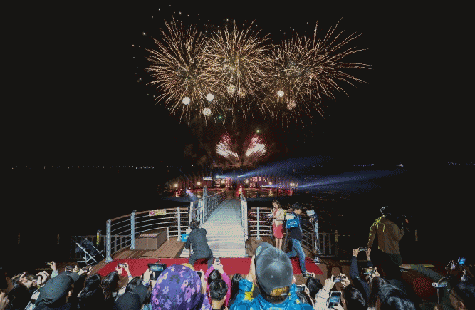평화광장에는 공연을 관람하기 위한 가족, 연인, 관광객 등 수많은 인파가 몰려 인산인해를 이뤘다. 또한 영산강하구둑, 갓바위 해상보행교 등 인근에서 불꽃쇼를 볼 수 있는 지점에도 많은 사람들이 몰렸다.