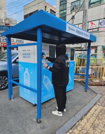 ▲투명페트병 무인회수기 사업은 관내 행정복지센터 등 9개소에 설치된 무인회수기에 투명페트병을 버리면 이용자에게 개당 10원이 적립되어 현금으로 환전하여 사용할 수 있다.