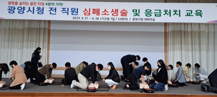 한편, 광양시는 지난 2월 지역 내 자동심장충격기 보유의무시설 123개소에 대해 소모품 패치, 안내표시, 경보장치 작동 여부 등 안전 점검을 일제히 실시했고, 자동심장충격기 안전관리책임자 응급처치 교육을 2년마다 1회 실시하고 있다.