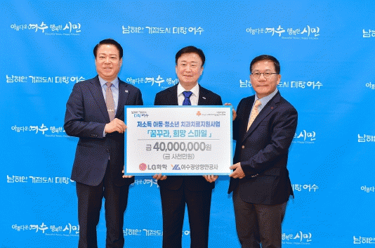 이날 정기명 여수시장은 “취약계층을 위한 복지사업에 민.관이 협력에 의미가 더 크다”며 “후원해주신 LG화학, 여수광양항만공사에 깊은 감사를 드리며, 앞으로도 어려운 이웃을 위해 지속적인 관심과 참여를 부탁드린다”고 전했다.