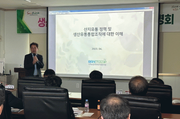 이날 설명회에는 생산유통 통합조직에 대한 이해를 돕고자 김현일 이사장(지역농업네트워크 전남협동조합)이 출강해 강의했다.