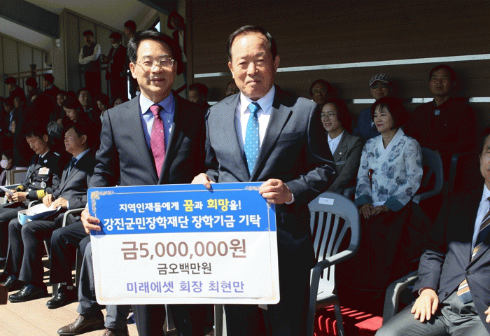 강진군민장학재단 강진원 이사장은 “군민들의 생일과도 같은 날, 강진을 사랑하는 마음을 담은 나눔과 베풂의 선물을 준 최현만 회장에게 감사하다”며 “기탁금은 학생들을 위해 소중하게 사용하겠다”고 감사의 말을 전했다.