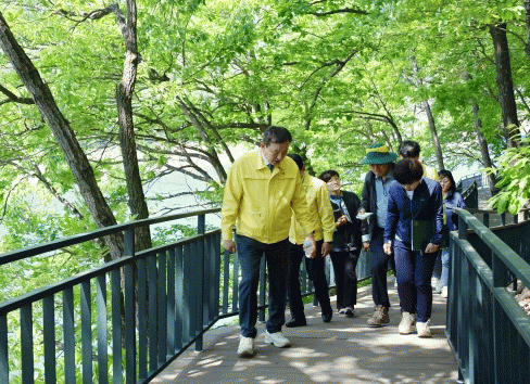 이날 이병노 담양군수는 용마루길을 직접 걸으며 보수공사가 완료된 구간을 다시 한번 점검했다.
