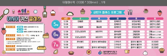 프로그램 일정은 ▲아시아 푸드(월남쌈·중국식 물만두 등) ▲베이킹(대만 카스테라·반미 바게트 등) ▲디저트(과일 모찌·제과류 등) 등 분야별로 운영된다.