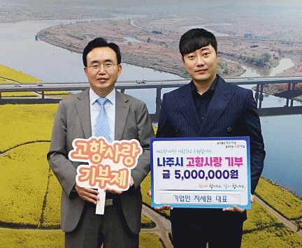 전라남도 나주시는 최근 ㈜유진테크노 지세원 대표이사가 고향사랑기부금 최고액 500만원을 기탁했다고 3일 밝혔다.