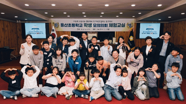 용산초 23명의 학생들은 의회 설명과 함께 회의장을 둘러본 후 각자 역할을 나눠 “학교폭력 예방을 위한 실천 방안”을 발의하고 토론을 거쳐 표결까지 진행하면서 민주적 의사결정 과정을 체험했다.