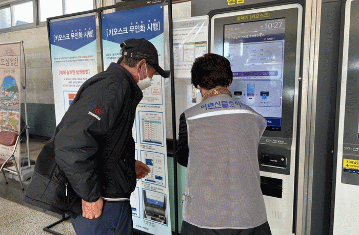 순천고속터미널은 지난해부터 유인 매표실을 폐쇄하고 전면 키오스크(무인발급기) 시스템을 도입했다. 직원들을 투입해 이용객의 불편사항을 살피고 있지만 노인 등 디지털 약자들이 키오스크 발권 자체에 어려움을 호소해 사용법을 안내해 줄 인력이 더 필요한 상황이었다.