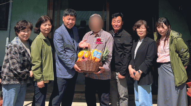 학교면 직원들은 이날 독거 어르신 댁을 방문해 카네이션과 과일바구니를 전달하고 안부를 살폈다.