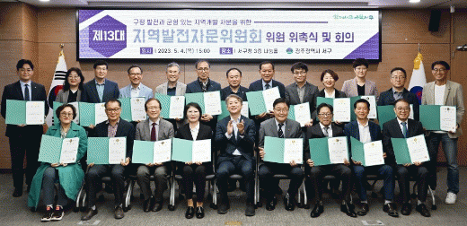 서구 지역발전자문위원회는 학계, 경제계, 언론계, 여성 대표 등 다양한 분야에서 활동하고 있는 24명의 민간전문가로 구성됐다. 위원회는 자치행정, 보건복지, 경제문화, 환경녹지, 도시안전 5개의 분과로 편성, 구정 전반에 대한 자문 기능을 수행하며 주민의 삶의 질을 높이는 역할을 할 예정이다.