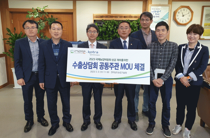 협약식에는 박홍재 국제농업박람회 대표이사와 백인기 대한무역투자진흥공사 광주전남지원단장 등 관계자 10여 명이 참석했다.