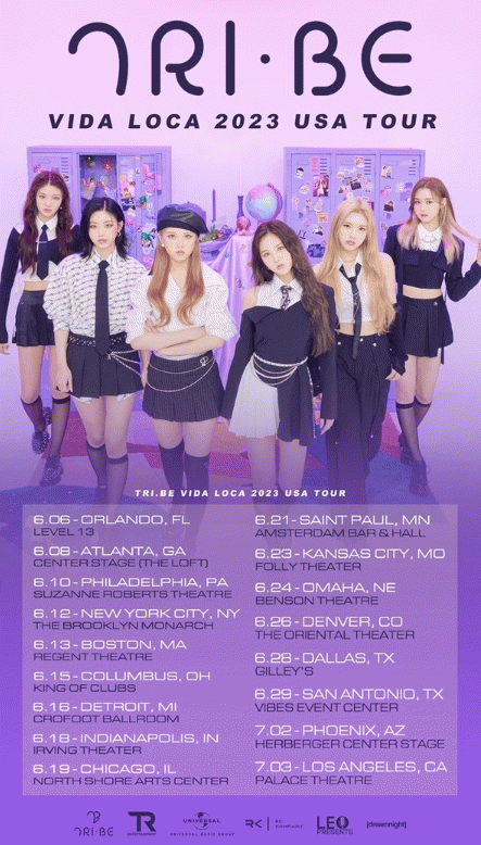 소속사 티알엔터테인먼트는 오는 6월과 7월 트라이비의 ‘TRI.BE VIDA LOCA 2023 USA TOUR(트라이비 비다 로카 2023 USA 투어)’ 개최 소식을 알리며 포스터를 공개했다.