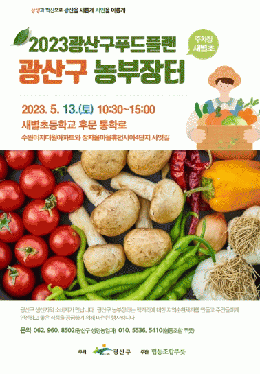 광산구 관계자는 “광산구 농업인의 소득 증대와 지역농업 활력, 먹거리 선순환을 위한 ‘푸드플랜 상생장터’를 연다”며 “신선하고 저렴한 지역 농산물을 만날 수 있는 이번 장터에 시민의 많은 관심을 바란다”고 말했다.