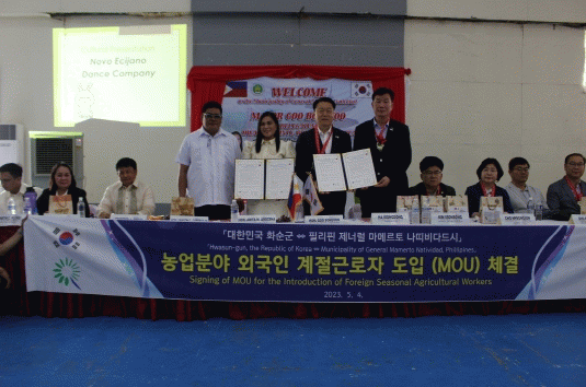 구복규 군수는 협약식에서 “농촌 경제 활성화를 위해 필리핀과 외국인 계절근로자 프로그램 협약을 맺게 된 것은 매우 뜻깊은 일”이라며 “앞으로 계절근로자 교류뿐만 아니라 문화·관광 등 다양한 분야에서도 협력 체계가 지속되기를 기대한다”라고 말했다.