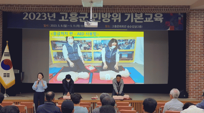 고흥군은 민방위대의 역할과 임무에 대한 개념을 확립하고 재난 대응능력을 높이기 위해 기본교육을 추진하고 있으며, 교육내용은 민방위 제도와 기본소양 교육, 화생방·지진 대응 방법, 응급처치 등으로 구성돼 있다.