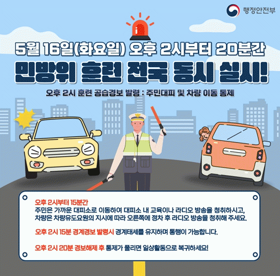 훈련은 공습 경보발령, 경계 경보발령, 경보해제 순으로 진행된다.
