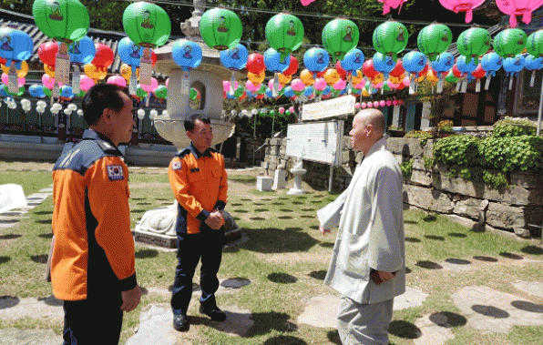 특히 사찰 내 소화기, 옥외소화전, 자동확산소화기 등 소방시설을 점검하고 부처님 오신 날 행사에 대비해 화재발생 때 초기 대처·대피방법 교육, 화재예방 안전수칙을 당부했다.