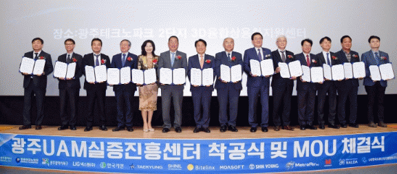 광주시는 착공식에서 북구, 광주테크노파크, LIG넥스원㈜, ㈜한국카본, 태경전자㈜, 신일정보기술㈜, ㈜비텔링스, ㈜모아소프트, ㈜신영, ㈜메트로에어, ㈜마이크로인피니티, ㈜날다, ㈔한국드론산업진흥협회 호남지회 등 13개 기관과 UAM산업 진흥을 위한 업무협약을 체결했다. 또 UAM실증진흥센터의 안전한 건립을 위한 안전결의대회를 가졌다.
