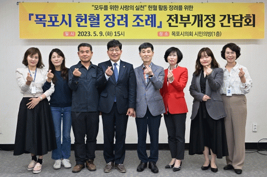 이날 간담회에서 백동규 위원장은'목포시 헌혈 장려 조례'개정의 필요성과 개정의 기본방향을 설명했고, 목포시 보건위생과장, 대한적십자사 광주전남혈액원 관계자 등 이 참석한 가운데 헌혈 활성화를 위한 조례개정 방향에 대해 논의했다.