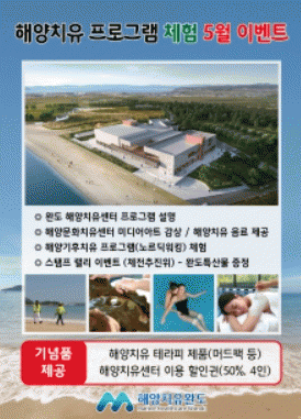 해양치유 프로그램 체험 이벤트는 신지 명사십리 해수욕장 인근에 위치한 해양기후치유센터에서 이뤄지며, 5월 중 매주 토.일요일에 진행된다.