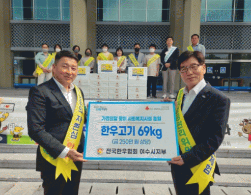 이정만 (사)전국한우협회 여수시지부장 “이웃과 따뜻한 마음을 나누기 위해 후원하게 됐다”라며 “후원을 지속적으로 이어가 지역사회 나눔 문화확산에 기여하겠다”고 말했다.