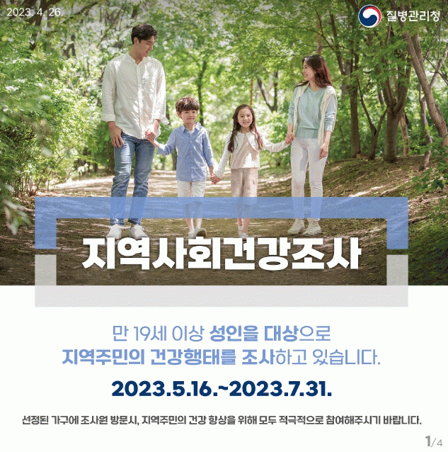 '지역보건법'에 따라 전국에서 동시에 실시되는 이번 조사는, 질병관리청 주관으로 전남대학교 산학협력단과 영암군보건소가 함께 진행한다. 조사에서 수집된 자료는 군민의 건강 수준을 높이는 지역보건의료계획 수립 건강통계자료를 산출하는 데 활용된다.