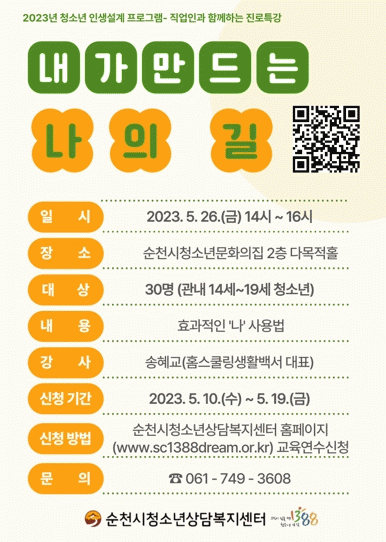 순천시 관계자는 “일회성이 아닌 지속적인 진로 프로그램을 운영하여 청소년이 스스로 진로를 설계하고 긍정적인 사고를 통해 미래를 준비할 수 있도록 최선을 다하겠다”고 밝혔다.