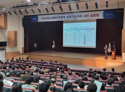 이날 시는 2026여수세계섬박람회 종합기본계획을 시민에게 처음 공개했으며, 박람회장 조성계획, 전시 콘텐츠 및 전시관 스토라인 구성, 주?부행사장 프로그램 계획, 향후 발전 방안 등에 대해 소개했다.