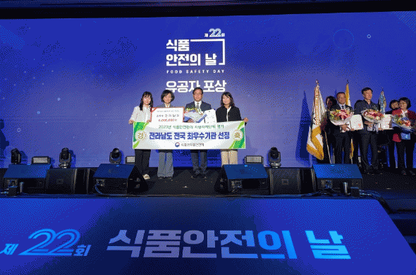 12일 서울JW메리어트호텔에서 열린 제22회 식품안전의날 기념행사에선 전남도 최우수기관 표창을 포함해 여수·함평·해남 등 3개 시군이 식품안전관리 우수기관 식약처장 표창을 받아 전남이 식품안전 분야를 선도하고 있음을 입증했다.