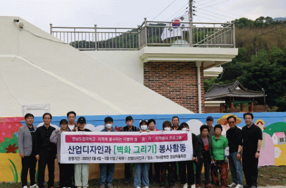 벽화 그리기 봉사활동은 이규현 전남도의원과 안창수 경상마을 이장의 제안으로 이뤄졌다. 전남도립대학교 혁신지원사업 일환인 지역에 봉사하는 더불어 삶 ‘끼’ 프로그램의 전폭적인 지원으로 진행됐다.