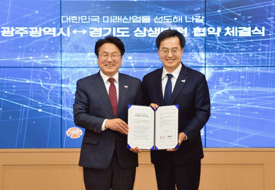 또 전국에서 유일하게 완성차 공장 2곳을 보유한 광주와 경기도의 미래먹거리 3대 핵심 전략산업 중 하나인 미래차 분야의 소재·부품·장비 산업 경쟁력 강화를 위해서도 공동 협력한다.