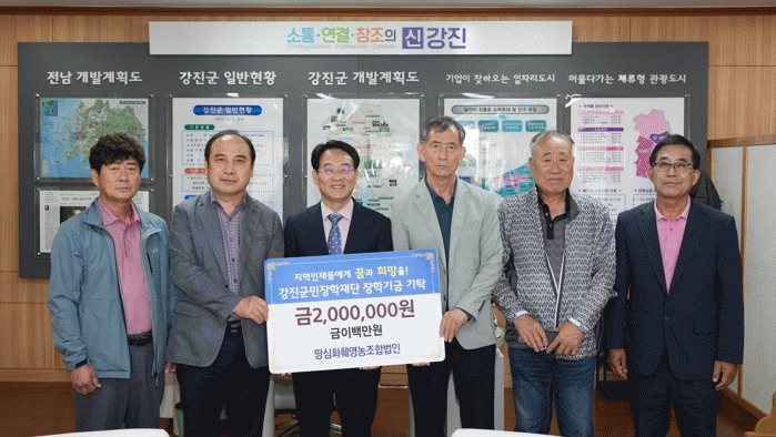 15일 강진군에 따르면 땅심화훼영농조합법인이 200만 원, 조합원 4인이 400만 원, 군동면 지역발전협의회이 100만 원을 장학재단에 기탁했다.