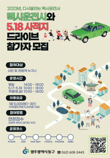 ‘2023년, 다시 달리는 택시운전사’는 2017년 8월 개봉해 1천만 명의 관객 돌파로 흥행몰이에 성공한 영화 ‘택시운전사’를 모티브로 기성세대는 물론 MZ세대들에게도 5·18광주민주화운동에 대한 관심과 흥미를 유발해 오월 광주 정신의 계승·발전을 위해 기획됐다.