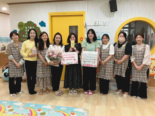 이날 행사에서는 센터 누리집을 통해 학부모 신청을 받아 선정된 어린이집 보육 교직원들에게 감사 편지와 꽃바구니를, 다른 어린이집에는 보육 교직원들을 위한 힐링 키트를 전달했다.