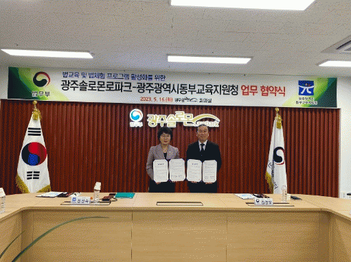 광주동부교육지원청 정성숙 교육장은 “이번 업무 협약을 통해 학생들이 다양한 법체험을 경험하고 정의로운 준법 의식이 서서히 체득될 수 있길 바란다”며 “법교육 활동이 활성화되도록 꾸준히 힘쓰겠다”고 밝혔다.