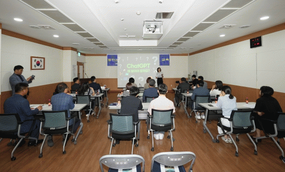 이날 교육은 챗GPT의 개념과 기능 및 활용방법, 사용시 주의사항을 안내했으며, 텍스트 기반 챗GPT와 챗PDF의 시연, 스마트폰의 챗GPT를 적용한 아숙업(AskUP)을 이용해 교육 참여자가 현장에서 채널을 추가해 기능을 직접 체험하는 시간도 가졌다.
